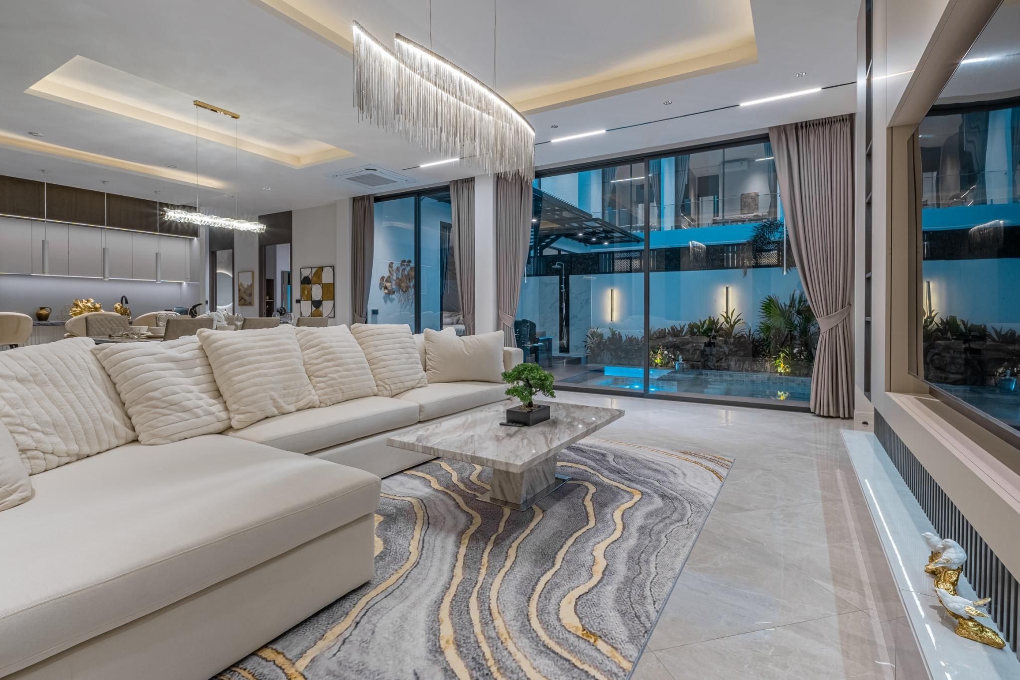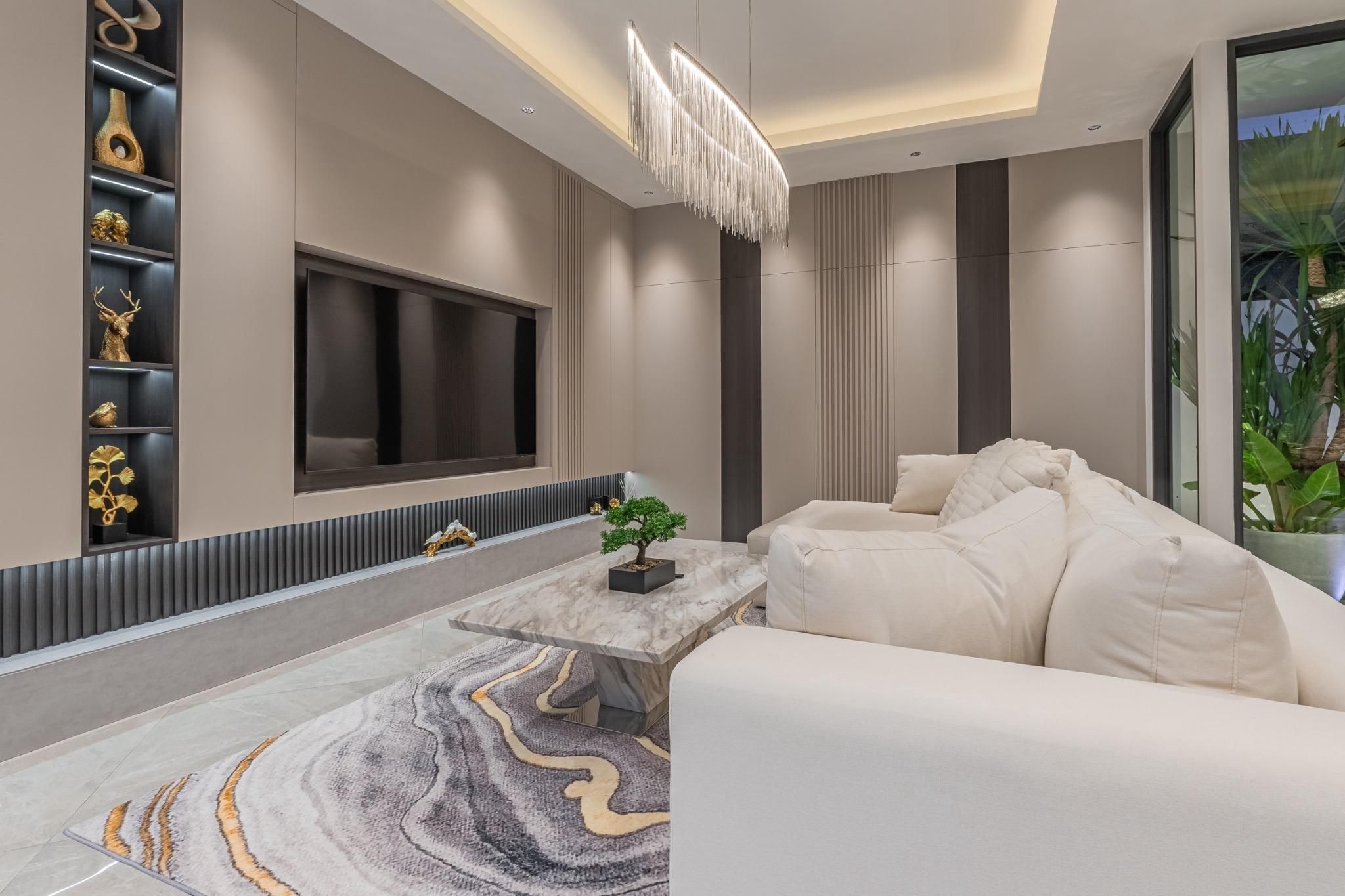 With 298 square meters of interior space set on 64 square wah of land, the villa is designed for those who appreciate quality and attention to detail. The home features five generously sized bedrooms, each with en-suite bathrooms, along with an additional guest powder room. The layout is both functional and elegant, with an emphasis on open, comfortable living spaces. High-end built-in furniture and premium appliances complement the contemporary design, creating an atmosphere of understated sophistication. A dedicated washing room and storage area add to the home’s practicality, ensuring that everyday living remains effortless.